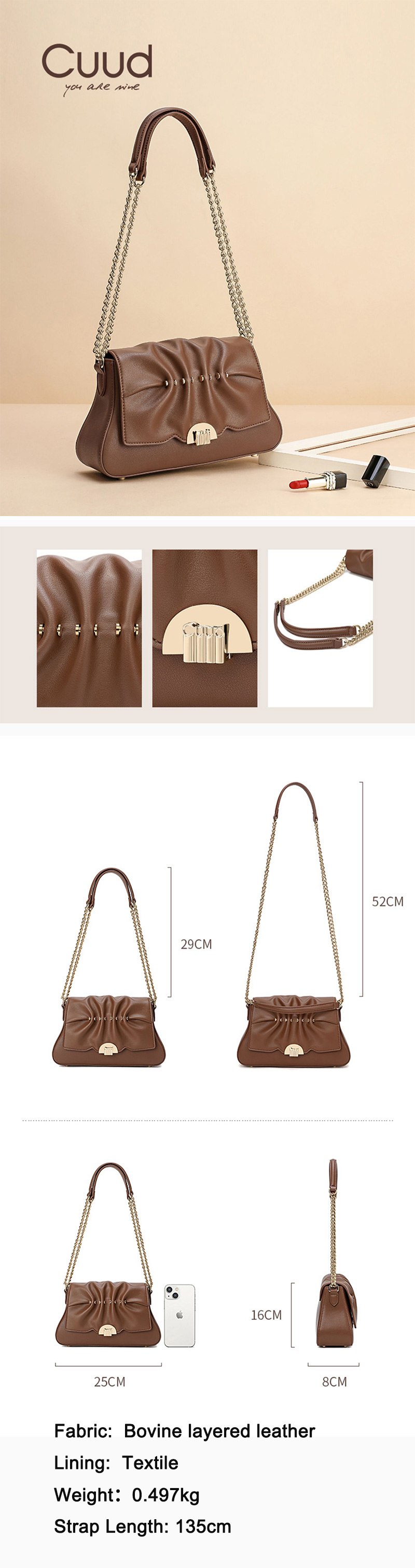 Minimally designed Maillard style pleated small bag, light luxury shoulder bag